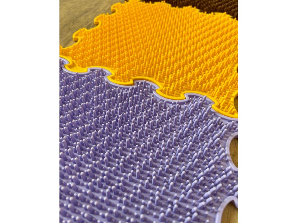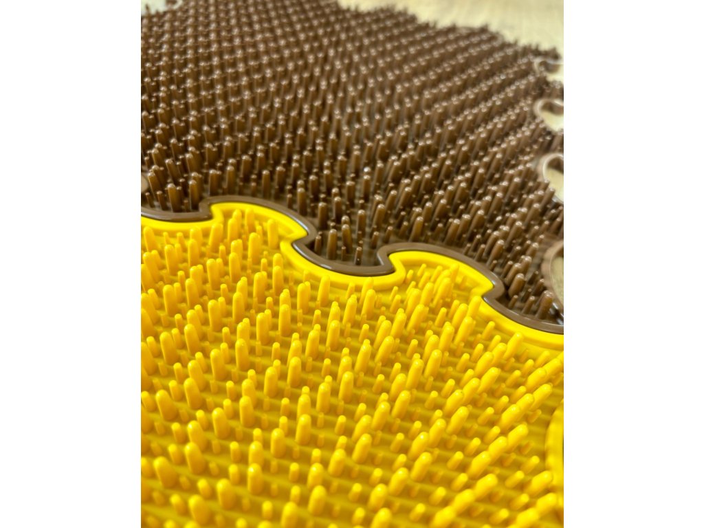 Ortopedická podlaha Tráva měkká je skvělou pomůckou pro prevenci a nápravu různých poruch chodidel. Díky jemnému stimulačnímu účinku na plantární svaly pomáhá posilovat a trénovat svaly chodidel a současně poskytuje příjemnou plošnou akupresurní masáž, která podporuje zdraví nohou.