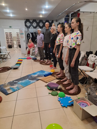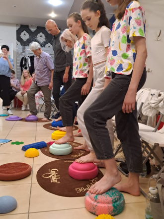 Jelikož první návštěva v rámci osvěty o péči nejen o nohy, ale celý pohybový aparát se velmi povedla, vyrazili jsme na naši druhou návštěvu do GRISHKO DANCE, kde jsme tentokrát nejen povídali, ale hlavní náplní bylo aktivní cvičení a využití našich cvičebních pomůcek.
