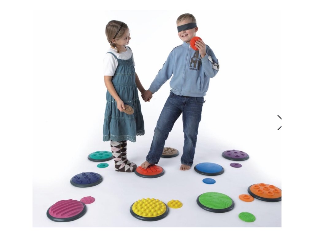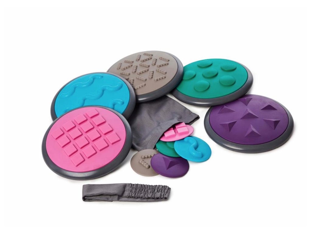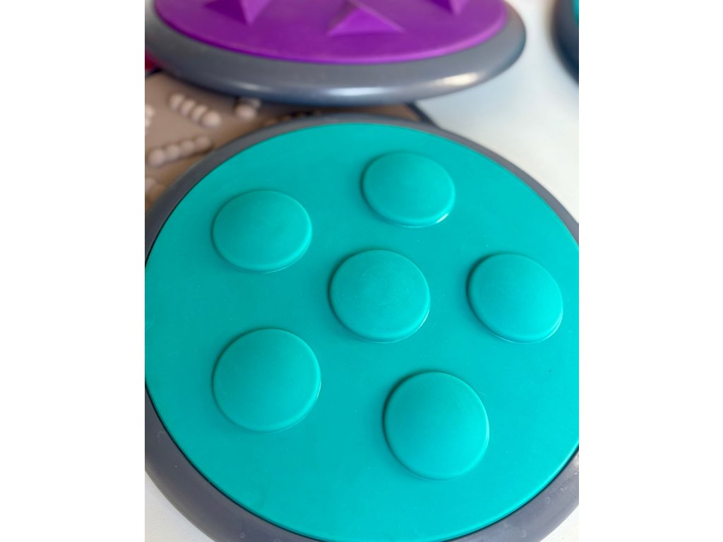 Jedná se o nezbytnou pomůcku pro správný vývoj hrubé motoriky, balanční rovnováhy a smyslů. V balení najdete disky větších a menších rozměrů vždy do páru podle povrchové struktury. Můžete hrát třeba jako obří pexeso pomocí nohou či rukou a klidně poslepu. Cílem je najít do páru disk se stejnou tvarovou strukturou na povrchu. Možností her je spoustu a Vy si vždy můžete vybrat a přizpůsobit podle věku dítěte. Disky jsou vždy po ruce, snadno se zaklízejí a vyklízejí pomocí přiloženého pytle.