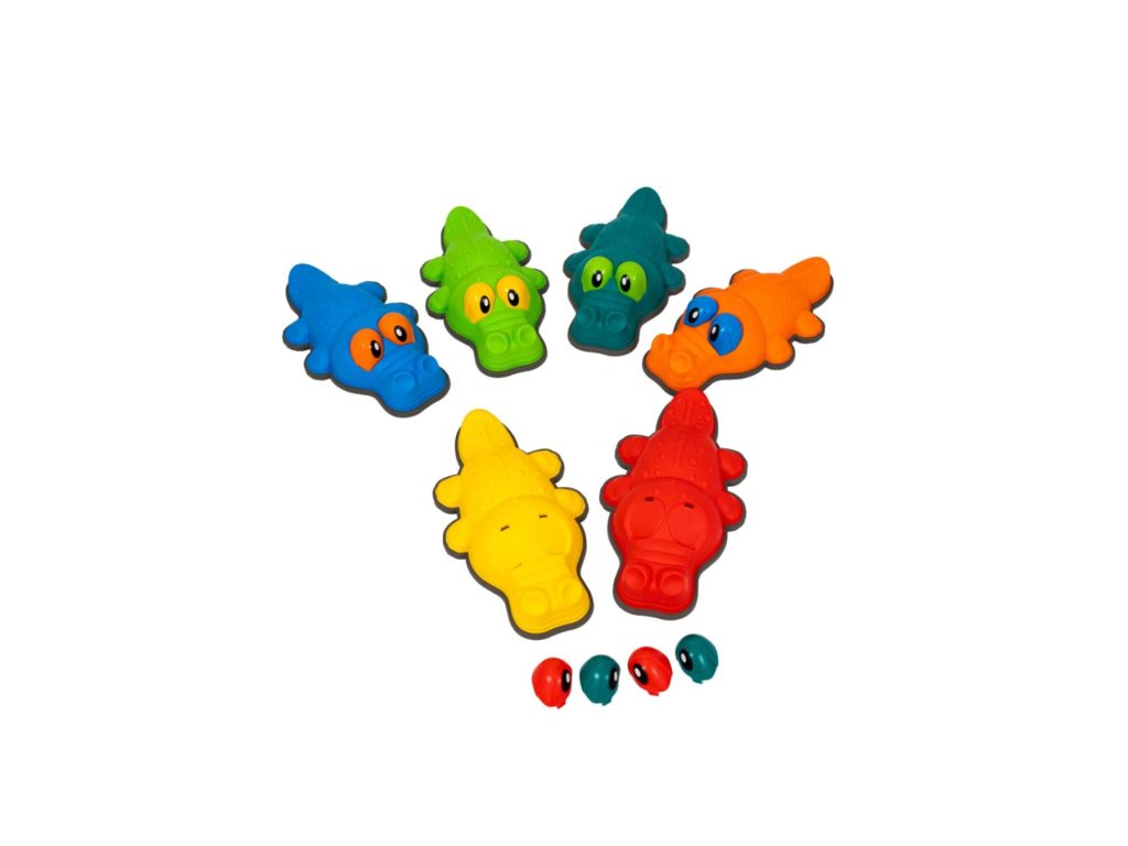 Každý krokodýl má rozměr 41 × 22 × 10 cm a sada obsahuje 6 ks. Unikátní výhodou jsou výměnné oči, které lze nasazovat a měnit, takže si děti mohou vytvářet vlastní výrazy krokodýlů. Kameny tak neslouží jen k tréninku rovnováhy, ale i jako kreativní, hravý prvek podporující fantazii.