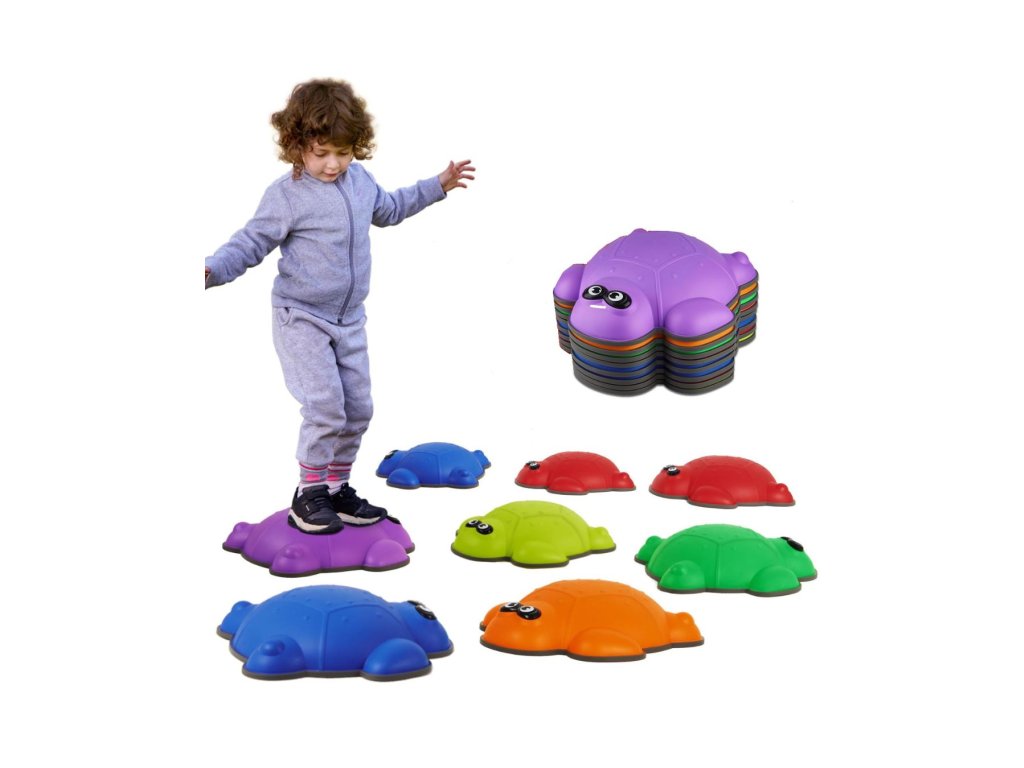 Sada balančních kamenů Želvy nabízí dětem zábavný a bezpečný způsob, jak rozvíjet motoriku, rovnováhu, koordinaci pohybů a jistotu při chůzi. Barevné želvy mají protiskluzný povrch, díky kterému děti mohou bezpečně přeskakovat, našlapovat a tvořit si vlastní balanční dráhy.