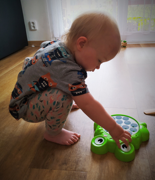 obr.4 dítě sebere předmět ze země s napřímenou páteří