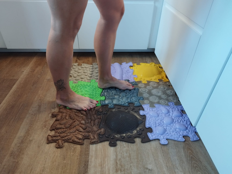 Chtějí-li také dospělí denně využívat ortopedické podložky k pravidelné stimulaci a cvičení, není nic jednoduššího, než je umístit do prostoru, kde tráví nejvíce času. Sestavte si kobereček u kuchyňské linky, pod pracovní stůl či do koupelny. Zkuste také položit podložky přímo do sprchového koutu, spojíte tak stimulaci s hydroterapií za střídavého sprchování teplou a studenou vodou.