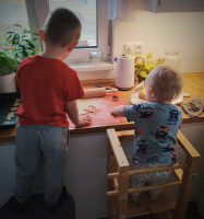 A jak jemnou motoriku podpořit? Nechte děti prozkoumávat okolí kolem sebe, zkoumat věci v domácnosti a přírodě. Říkejte a ukazujte dětem svět kolem sebe. Když budou mít možnost si následně předmět prozkoumat, uvidíte, že si samy vymyslí, jak se s ním dá pracovat. Děti rády pomáhají v kuchyni, vaří, vykrajují, válejí. K tréninku jemné motoriky a současně trpělivost výborně poslouží i zapínání zipů, knoflíků, později vázání tkaniček.