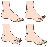 Při poklesu nožní klenby a přetížení přední části nohy dochází k jejímu mírnému prodloužení. Aby si postižený chránil bolavou propadlou příčnou klenbu, vzpírá se na prsty, a tím dochází ke zkrácení vazů a šlach. Toto zkrácení táhne prsty do pokrčení. Ohnuté prsty pak vypadají jako kladívko. Při změně postavení prstu má postižený problém i s tlakem prstů v botách. Tlakem obuvi na mezičlánkové klouby prstů dochází ke vzniku otlaků a zhrubění i na kosti. Otlaky se mohou vyskytnout i na jiných místech nohy, která jsou přetížená.
