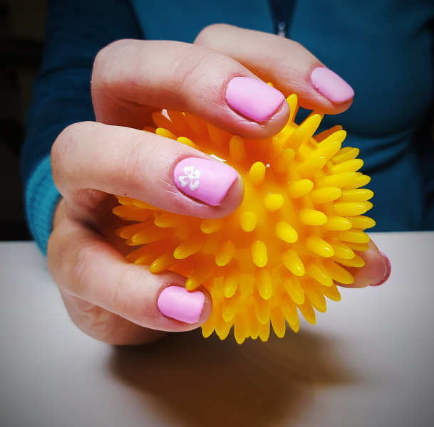 obr. 6+7 cvičení úchopu s pomůckami