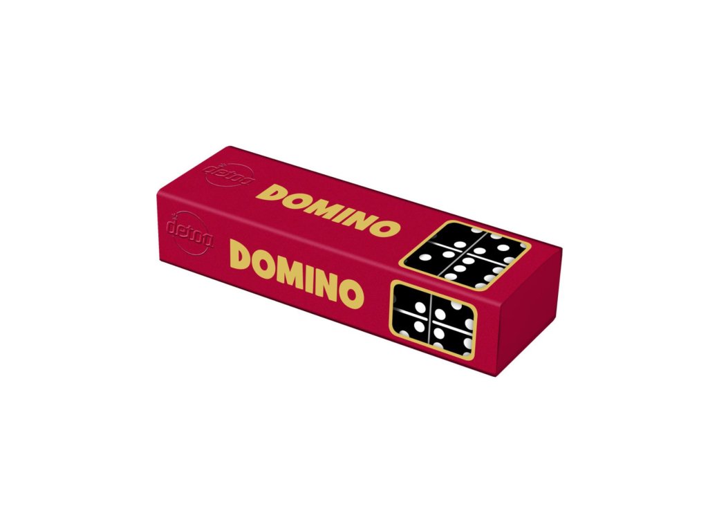 Stolní hra se sadou dominových kamenů o rozměrech 20x40 mm v krabičce. Kameny mají na sobě kombinaci dvou čísel.