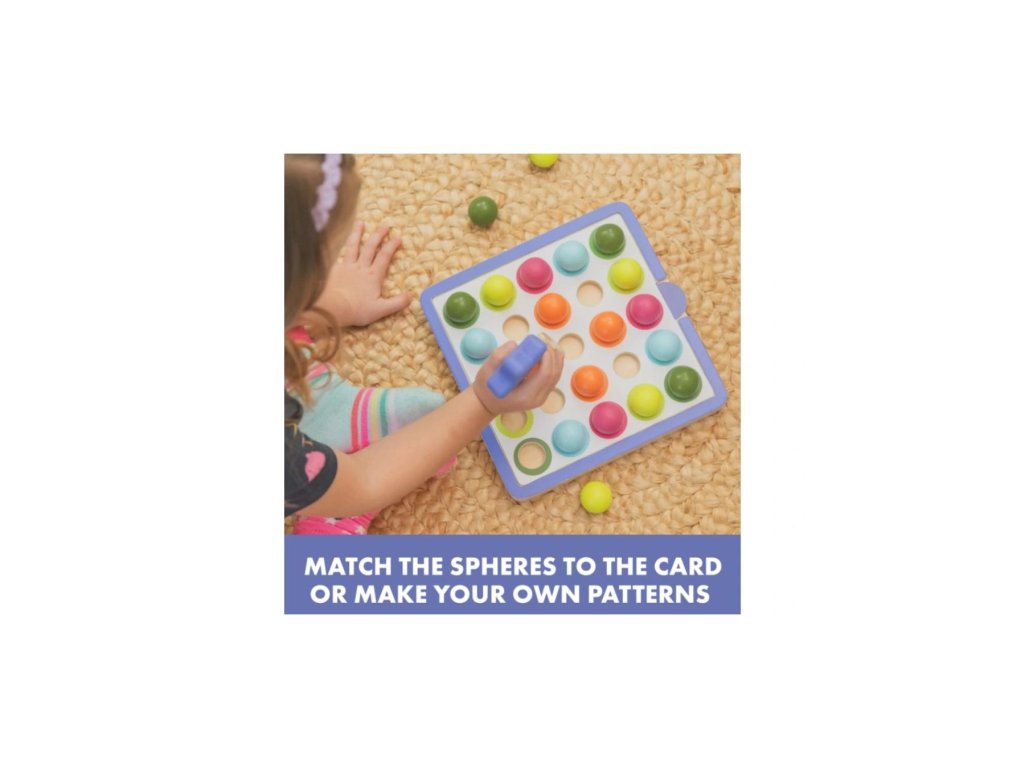 - Obsah balení: Dřevěná deska, 5 oboustranných vzorových karet, 25 dřevěných kuliček, pinzeta Easy Tweezies, průvodce aktivitami