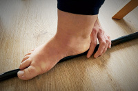 Pod chodidlo položíme tyčku (např. násadu od koštěte).