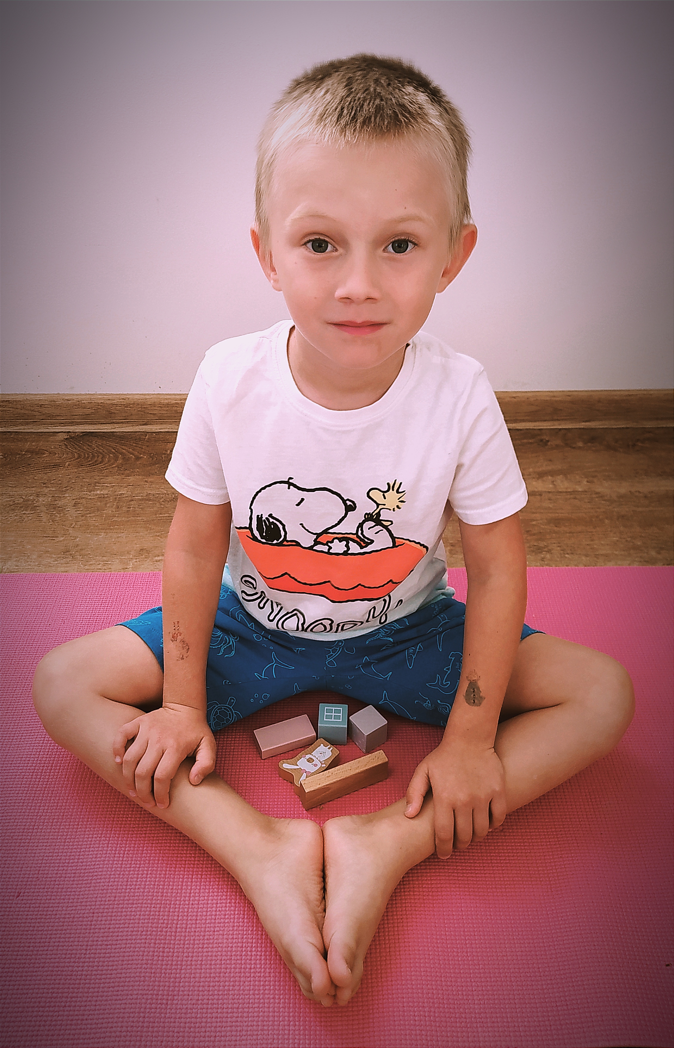 Pro děti je snadno uchopitelné cvičení na zvířátka. Dobře si zvíře představí, umí napodobit jejich zvuk i pohyb. Pro inspiraci cvik medvěd, brouček, rak, holubička/čáp.