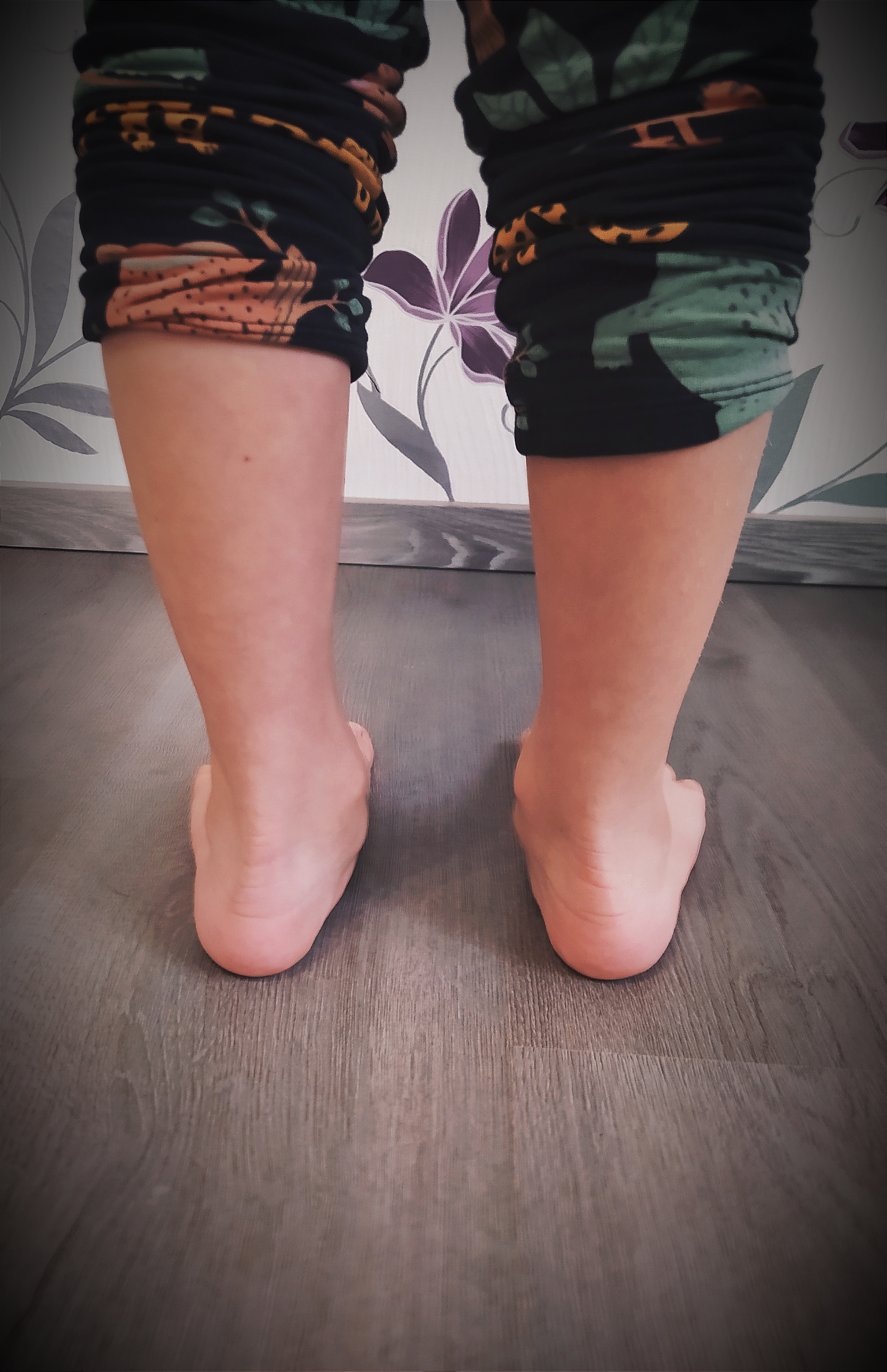 Při tomto cvičení využijeme balanční podložku či ortopedickou podlahu. Vystoupíme nahoru, srovnáme chodidla vpřed a snažíme se kopírovat polokulatý tvar.