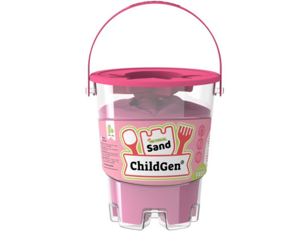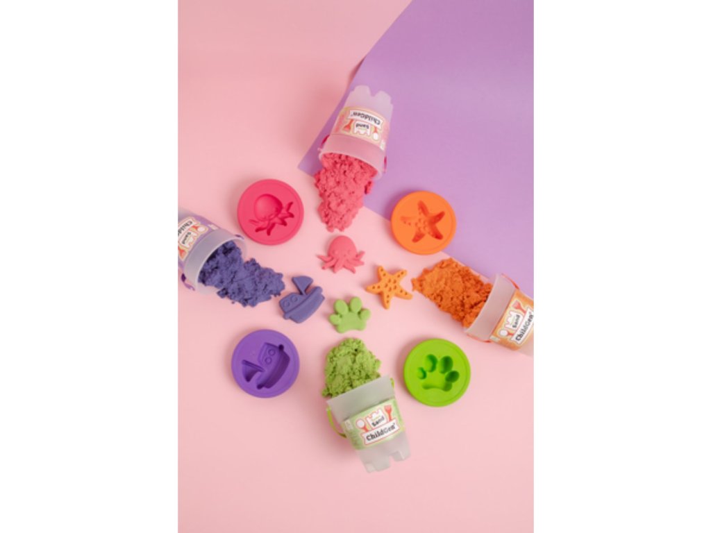 Dostupný v pěti barvách: přírodní, zelená, žlutá, fialová, modrá, oranžová a růžová – kinetický písek ChildGen přináší jedinečnou zábavu bez nepořádku.