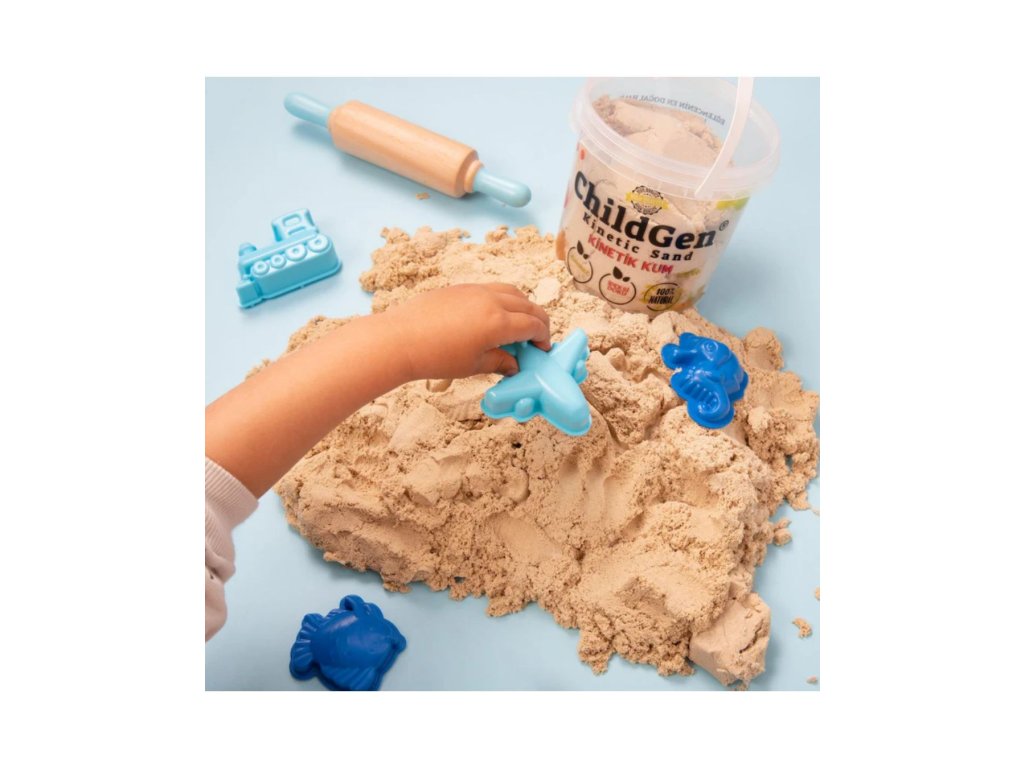 Na rozdíl od běžných kinetických písků, které často obsahují olej a silikon, ChildGen sází na 100% přírodní složení. Náš písek je vyroben z přírodního mořského písku, který ve spojení s vodou a přírodním polymerem získává své „kinetické“ vlastnosti, jako jsou měkkost a efekt pohybu/„nadýchání“. Unikátní přísadou jsou také jedlé aromata inspirované vůněmi našich modelín, díky nimž je hra ještě příjemnější a poutavější.