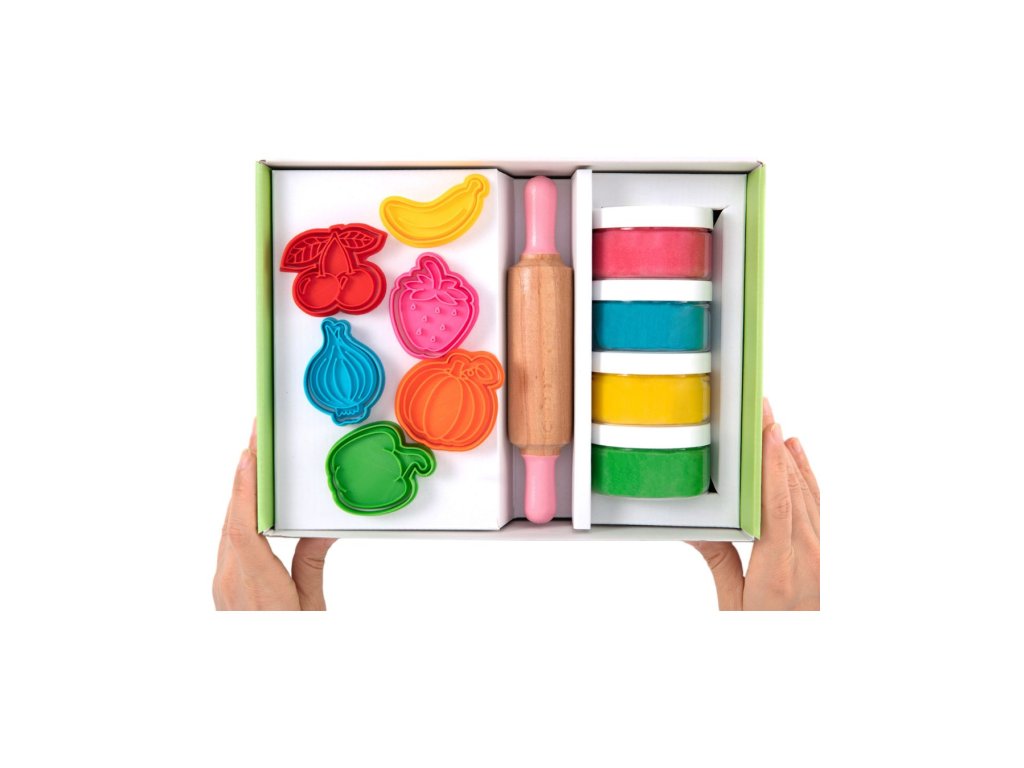 Hraní s vykrajováním modelíny je nejen skvělá zábava, ale také výborný způsob, jak rozvíjet dětské motorické dovednosti a obratnost. Během hraní se dítě může učit názvy ovoce a zeleniny, rozpoznávat barvy a dozvědět se, kde jednotlivé produkty rostou. Je to ideální příležitost, jak dítěti představit svět zdravé výživy – můžete společně připravit zdravé jídlo z modelíny pro panenky a medvídky!