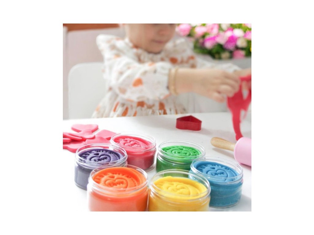 . 4 barvy modelíny po 125 g každý (modrá, žlutá, zelená a růžová) vyrobené pouze z přírodních složek