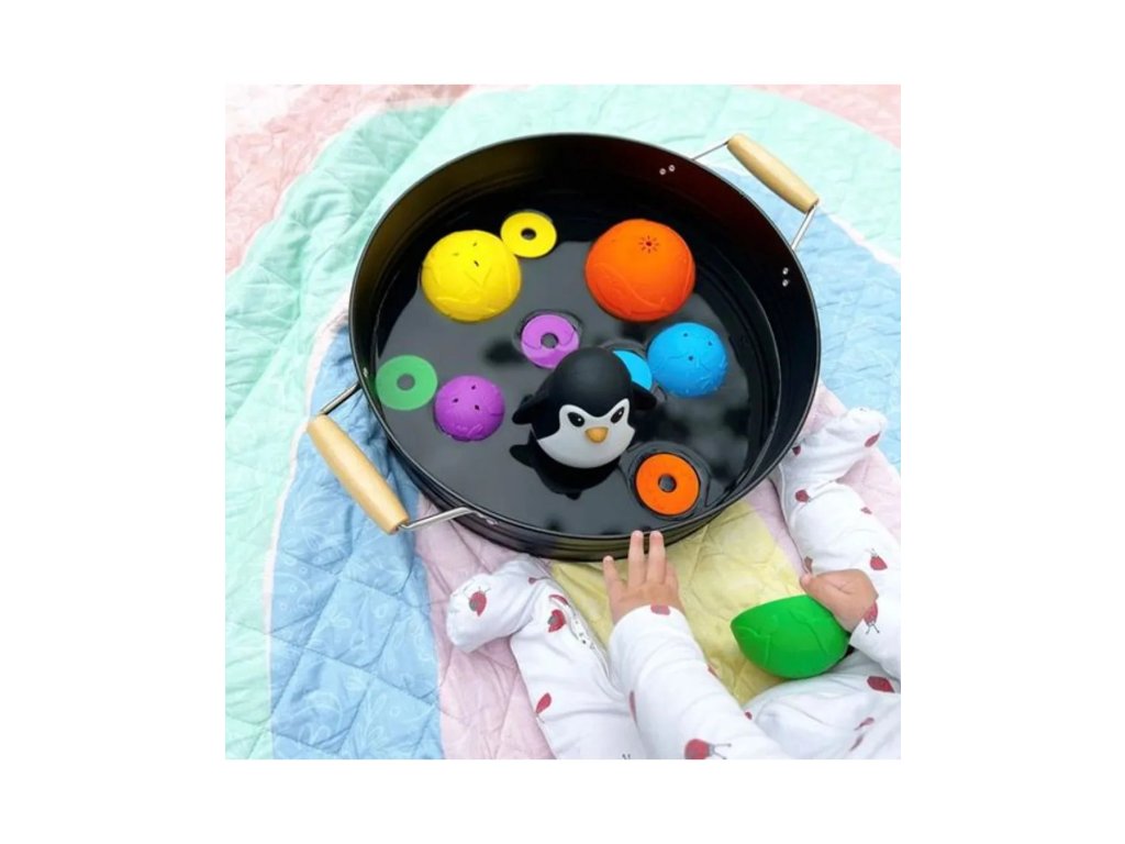 Kývající tučňák Jellystone Designs se díky chytře navržené zatížené základně kýve ve všech směrech a vždy se vzpřímí do původní podoby. Kontrastní barvy dobře vnímají i novorozenci, hračka zaujme cinkáním, a protože má tvar, který dobře zapadá do malých ručiček, klukům a holkám se pohodlně drží. Kývající tučňák je vyroben z měkkého silikonu a je vhodný také jako kousátko. Protože je hračka Jellystone Designs krásně zabalena, výborně poslouží jako vhodný dárek pro miminko.