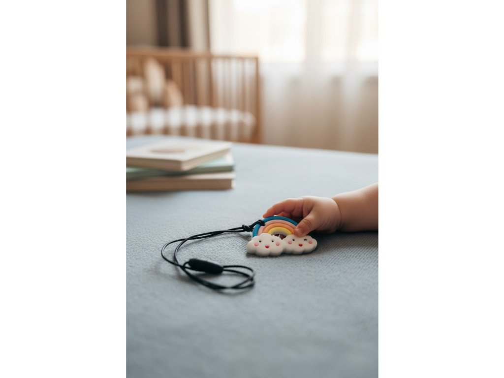 Vyrobeno z vysoce kvalitního potravinářského silikonu, náhrdelník je 100% bezpečný, bez BPA a dalších škodlivých látek. Skvěle funguje jako nástroj podporující soustředění, emoční samoregulaci a samouklidnění v náročných situacích.