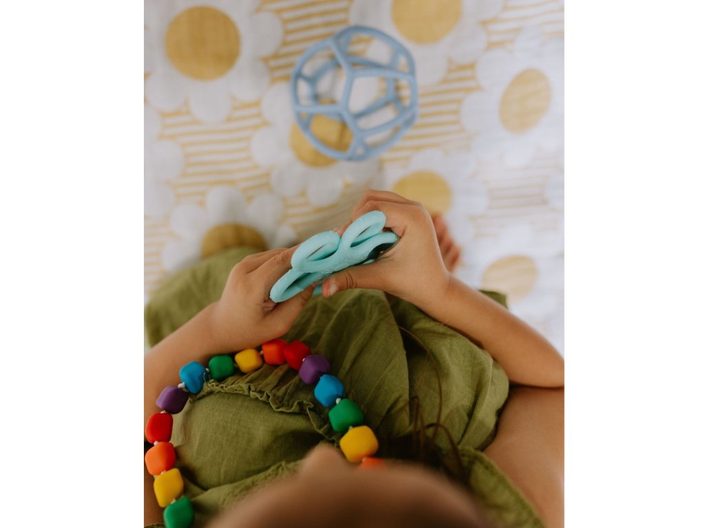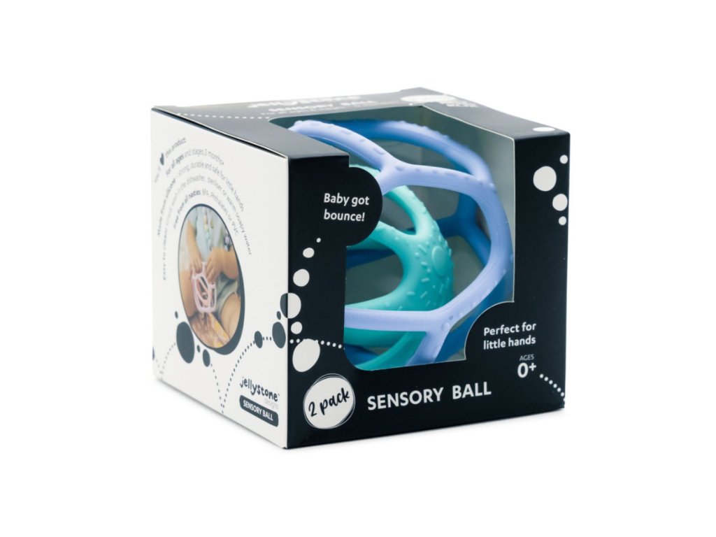 Sada Jellystone Designs Sensory Ball + Fidget Ball je dokonalou kombinací bezpečného kousátka a hračky podporující rozvoj smyslů a motorických dovedností. Oba míčky jsou vyrobeny z měkkého, potravinářského silikonu, který je zcela bezpečný pro kousání, snadno uchopitelný malými ručičkami a velmi jednoduchý na čištění – stačí je umýt v teplé vodě s mýdlem nebo vložit do myčky či sterilizátoru. Toto funkční řešení 2v1 kombinuje kousátko a senzorickou hračku v jedné sadě.