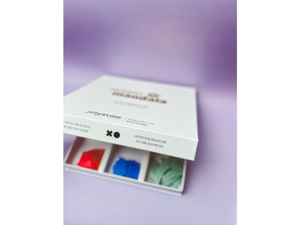 Objevte ideální pomůcku pro děti i dospělé, kteří potřebují uvolnit napětí, zklidnit mysl nebo zlepšit soustředění. Mindful Mandala od Jellystone Designs jsou tvary z jemného, 100% bezpečného potravinářského silikonu. Detailní mandalová textura nabízí příjemnou hmatovou stimulaci, která podporuje soustředěnost, koncentraci a emoční regulaci.