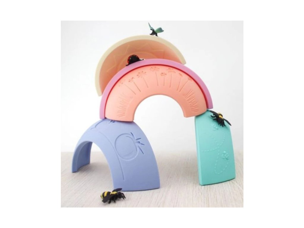 Každý oblouk má konkávní vzory inspirované zahradou – najdete zde květiny, listy, motýly a další rostlinně-zvířecí detaily. Tyto vzory se skvěle hodí jako pomůcky pro hraní s plastelínou, dortíkem nebo kinetickým pískem.