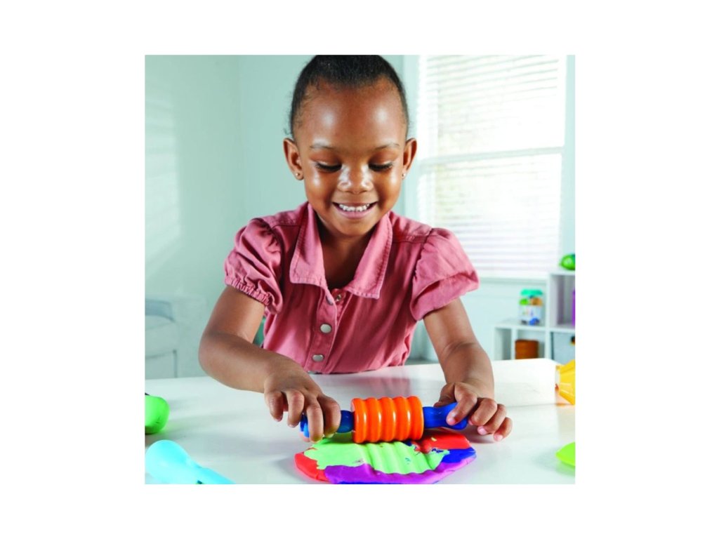Helping Hands Tactile Tools je čtyřdílná sada plastových smyslových nástrojů určených pro malé děti. Každý nástroj posiluje jiný pohyb ruky – tlačení, mačkání, válení a řezání – a pomáhá tak rozvíjet jemnou motoriku při hře s těstem, modelínou nebo hlínou.