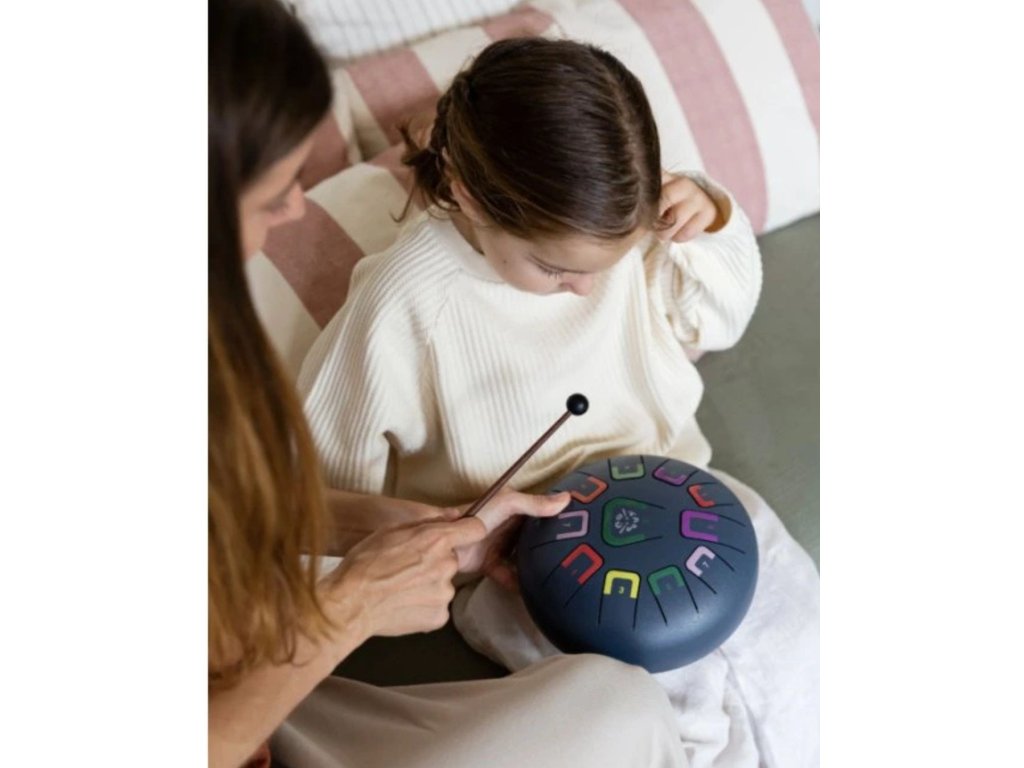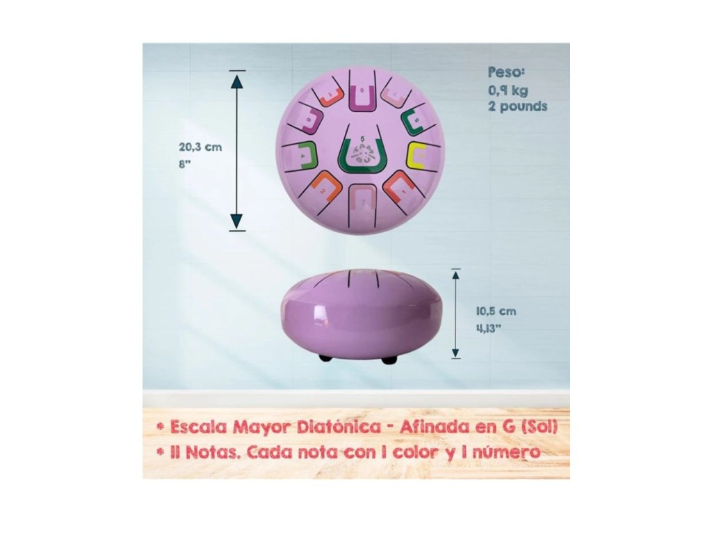 Tento nástroj má sametový zvuk, který je často spojován s relaxačními účinky. Jeho zvuky vás i vaše děti nadchnou a můžete ho rozezvučet různými způsoby. TAMBÚ je vybaven notami v číslech a barvách, které usnadňují začátky. Má diatonickou stupnici v G dur (Sol).