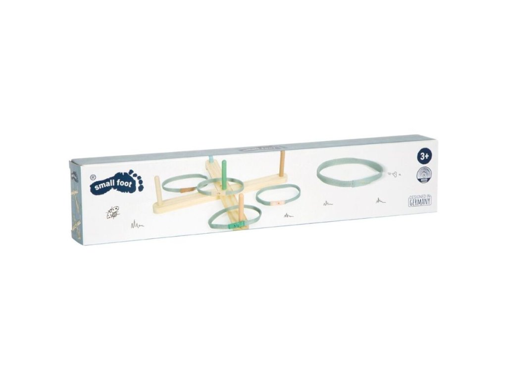 Kdo má nejlepší mušku? Trefíte se napoprvé? Precizně vyrobená hra zabaví celou rodinu včetně menších dětí! Kroužky a tyče jsou odlišeny barevně a každý kroužek je navíc označen roztomilým zvířátkem - žábou, veverkou, ptáčkem, králíčkem a ježkem.