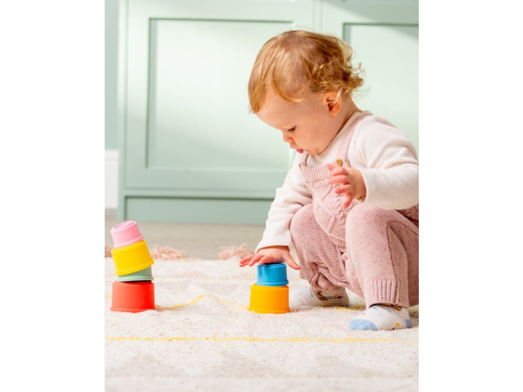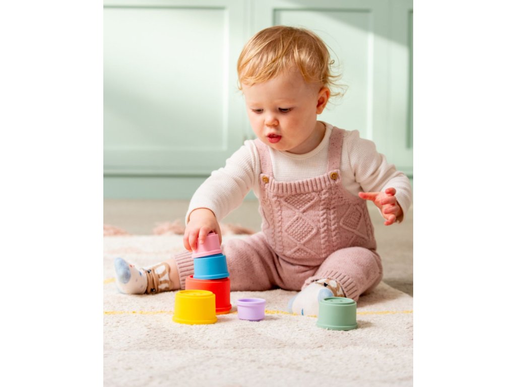 Kromě praktických dovedností přinášejí kalíšky i zábavu při učení barev, počítání a rozpoznávání různých velikostí. Jejich jemné duhové odstíny vizuálně přitahují pozornost dětí a podněcují jejich zvědavost.