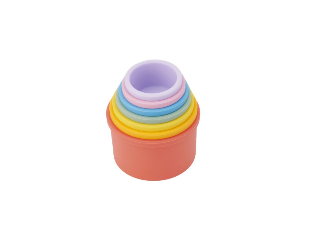 Tato sada stohovacích kelímků v nádherných duhových barvách je perfektní hračkou pro děti od 6 měsíců. Kalíšky jsou vyrobeny z měkkého a bezpečného silikonu, který je příjemný na dotek, flexibilní a odolný, což zajišťuje jejich dlouhou životnost a bezpečné používání i pro nejmenší děti.