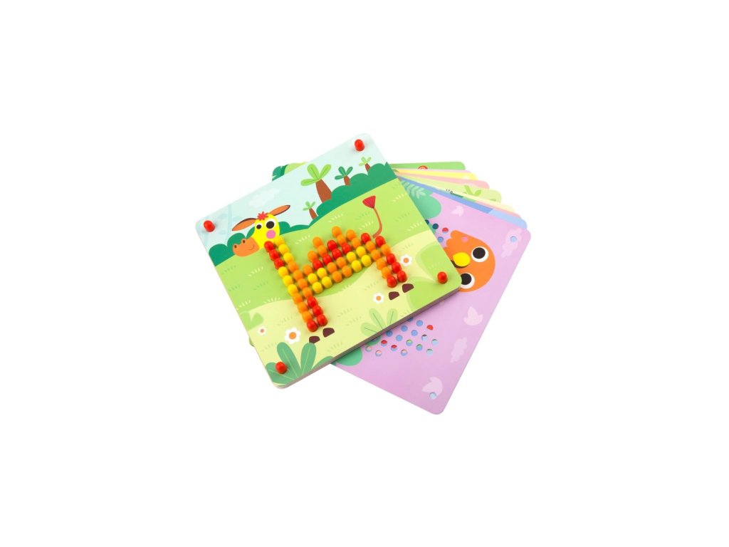 Veselá mozaika se zvířátky rozvíjí kreativitu, představivost a jemnou motoriku. Stačí vložit malé barevné hříbky do dírek na prkně a vytvořit krásné obrázky zvířátek podle předlohy nebo vlastní fantazie. Díky práci s malými dílky si děti přirozeně trénují úchop a koordinaci ruka-oko, zároveň se učí rozpoznávat barvy a počítat.