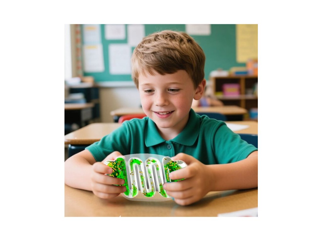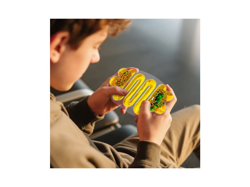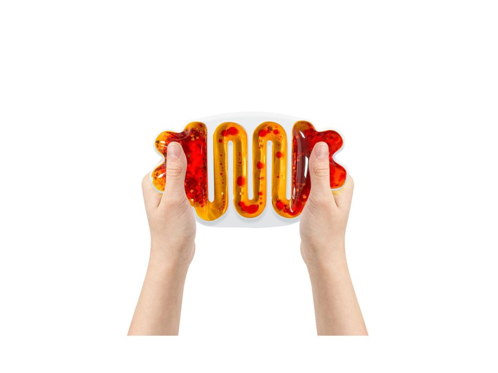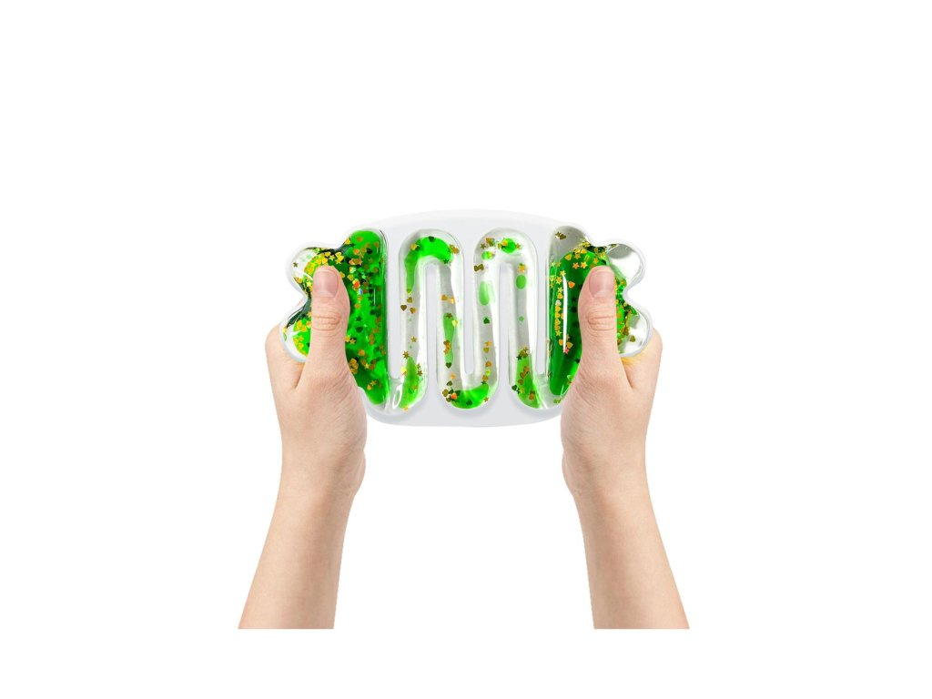 Senzorická měkká hračka naplněna průhlednou tekutinou a třpytkami, se kterou lze manipulovat stisknutím hračky. Vznikající efekt tekoucích částic v bludišti uvnitř mačkací hračka zajišťuje uklidňující a poutavý vizuální a hmatový zážitek. Produkt se skvěle hodí nejen doma, ale také v terapeutické ordinaci nebo na cestách.