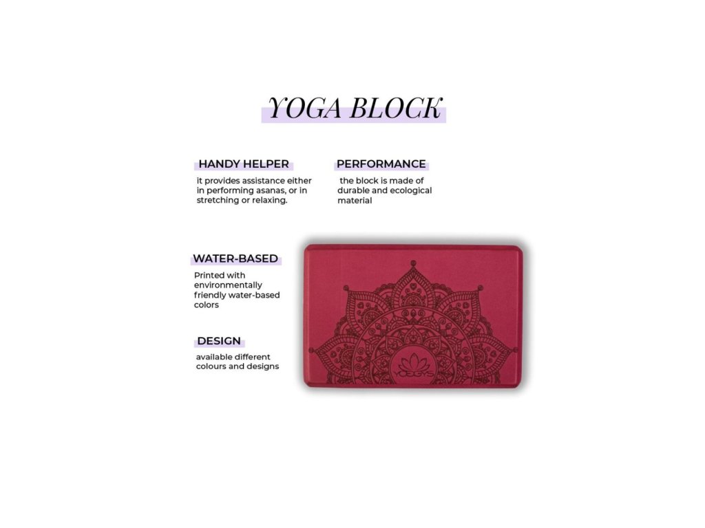 Jedinečná, podpůrná cihlička s krásným a originálním designem. Velmi praktická jógová pomůcka. Poskytne vám pomocnou ruku, usnadní a zpříjemní provedení mnoha ásan, pro které ještě nejste dostatečně flexibilní. Vyrobeno z odolné speciální EVA-pěny. Potištěno ekologicky nezávadnými barvami na vodní bázi. Perfektní úchop, nenahraditelná opora.