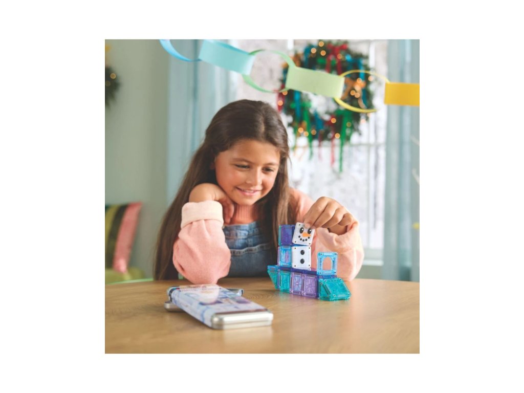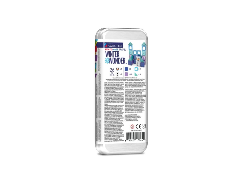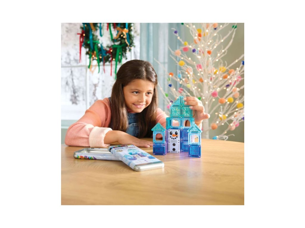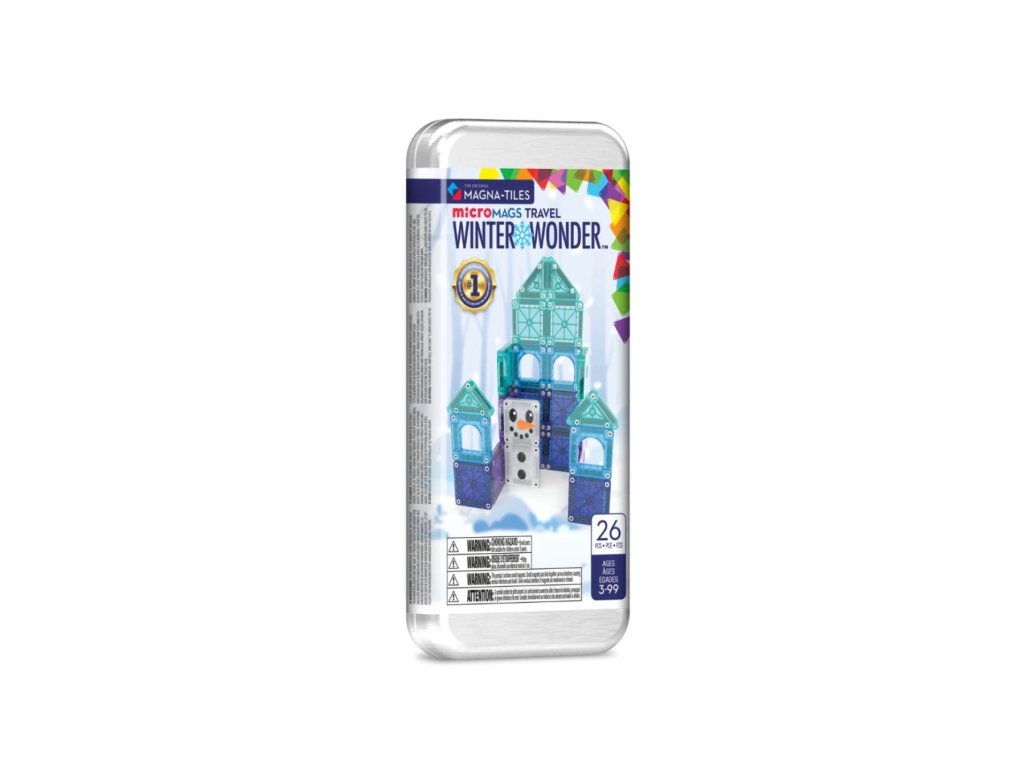 Magnetická stavebnice microMAGS Travel Set je ideální společník na cesty. Obsahuje praktičnost a zábavu v jednom kompaktním balení. Zimní tématika přinese dětem do magnetické hry záplavu zábavy a mrazivé magie! Díky svěžím zimním barvám, které se třpytí jako sněhové vločky, tato sada umožňuje mladým stavitelům vytvářet ledové hrady, postavičky a zasněžené scény.