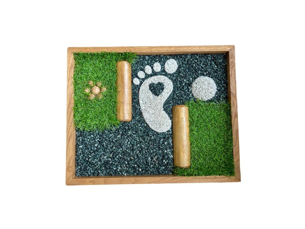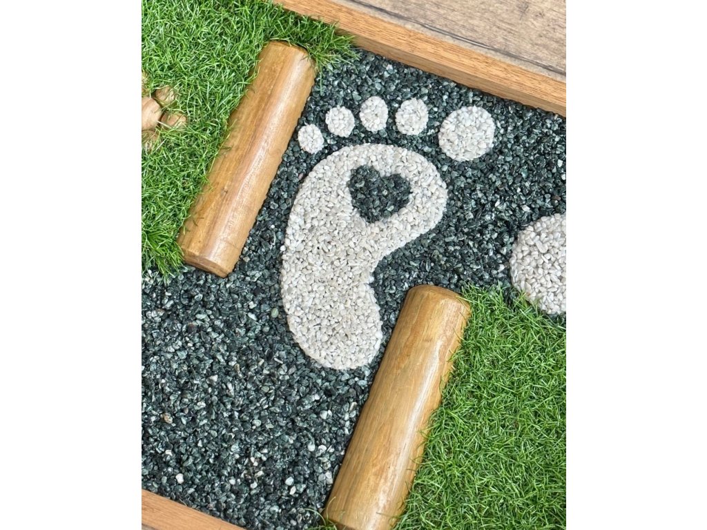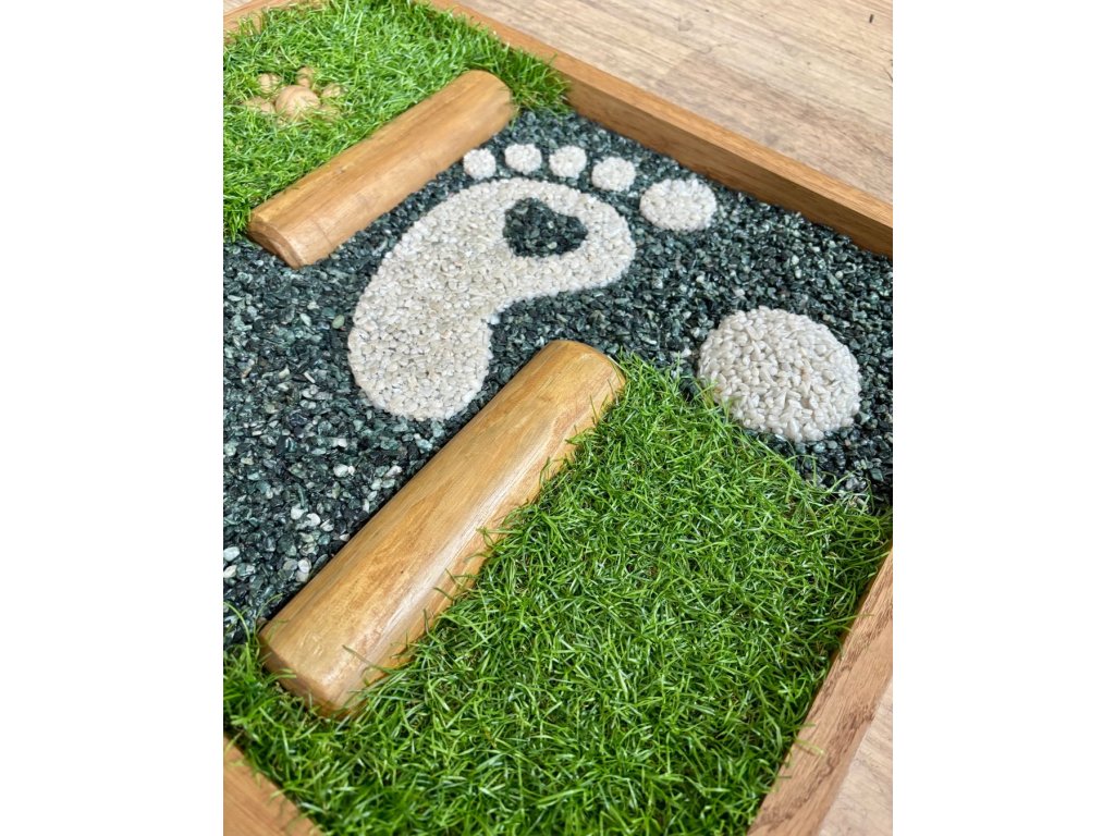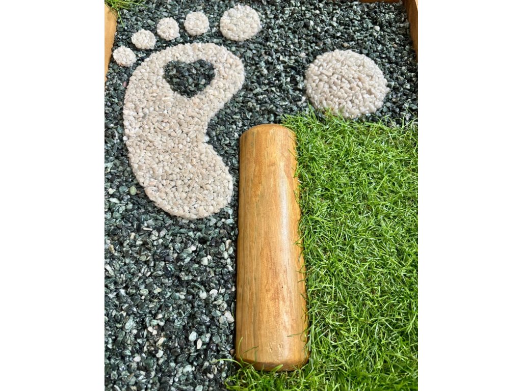 Travní plochy slouží k relaxaci a uvolnění chodidel. Výstupky z kamínků nebo ze dřevěných kuliček můžeme použít na klenění příčné klenby, centraci paty či podepření klenby podélné.