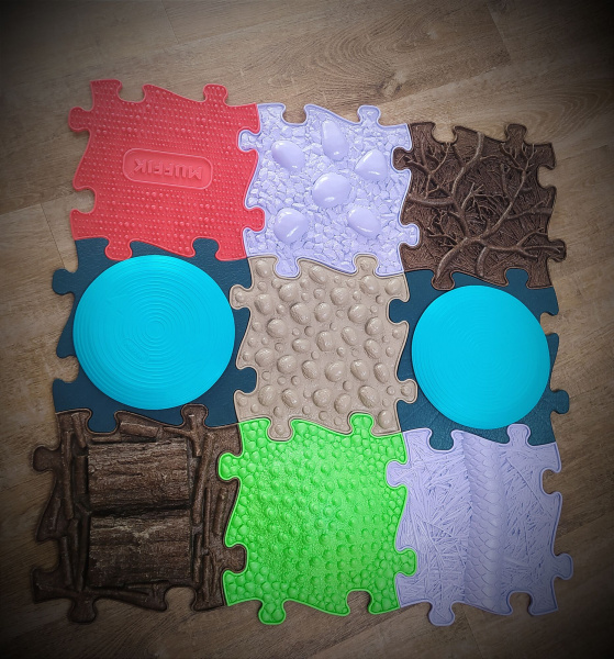Magická rotana od značky Muffik má velikost klasické muffikovské podložky 29,79 x 29,79 cm, a jednoduše tak zapadne do ostatních ortopedických podlah. K dostání je ve dvou barevných kombinacích (tyrkysová nebo šeříková) a v balení po 1 nebo 2 kusech. Můžete ji tedy zkombinovat s ostatními díly a postavit si skvělou dráhu nebo ji využijte k samostatnému cvičení nebo aktivnímu sedu.