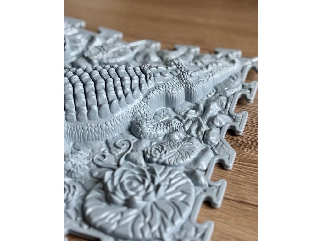 Ortopedická podlaha Ortonature Krokodýl měkký je navržena pro jemnou stimulaci chodidel a podporu zdravého vývoje nožní klenby. Měkký povrch s unikátní texturou připomínající krokodýlí kůži poskytuje příjemnou masáž, která zlepšuje prokrvení, zmírňuje únavu nohou a uvolňuje svalové napětí. Tato podlaha je vhodná pro děti, které si zamilují její zajímavý design, ale i pro dospělé, kteří ocení její šetrnou stimulaci pro zlepšení stability a rovnováhy. Ideální pro každodenní použití, rehabilitaci, relaxaci nebo cvičení, a pomáhá předcházet ortopedickým potížím.