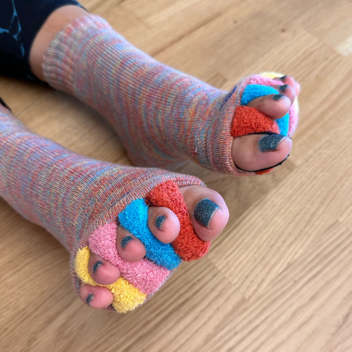 A jak vbočenému malíčku můžeme pomoci? Zde máte pár tipů na nejen samostatné cvičení, ale i cvičení s pomůckami a relaxaci v adjustačních ponožkách.