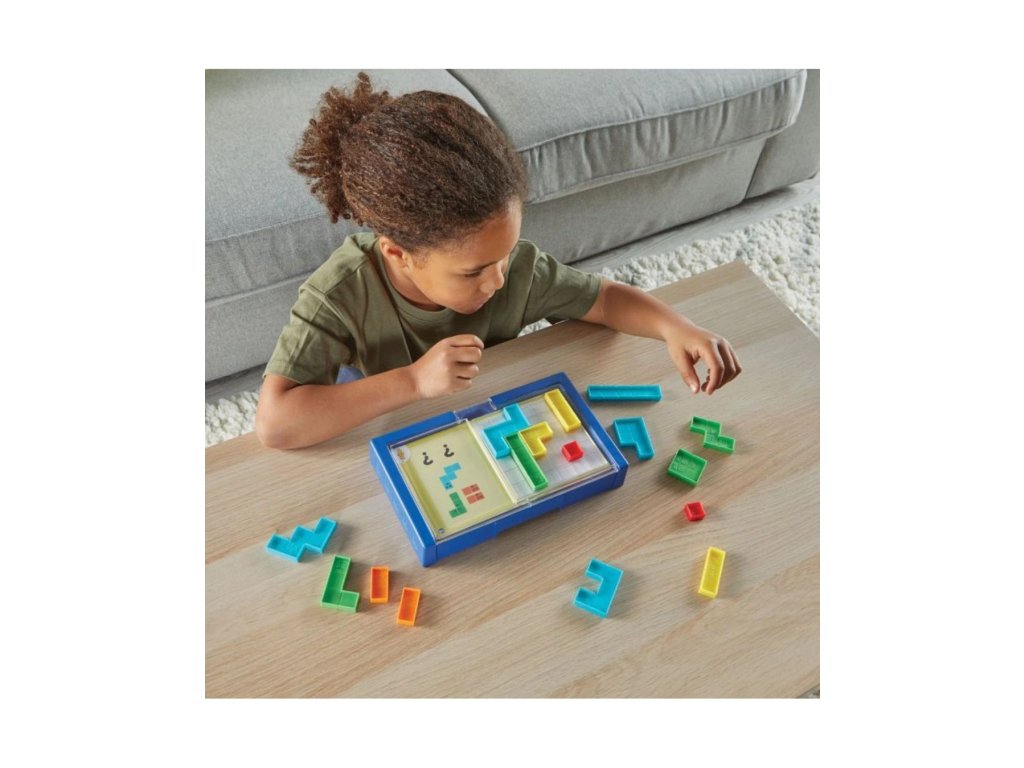 Hra je navržena tak, že dítě začíná jednoduššími výzvami a postupně přechází ke složitějším, což podporuje plynulý rozvoj dovedností. Díly se skladují uvnitř pouzdra, takže po hraní je vše uklizené a připravené pro další použití.