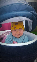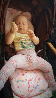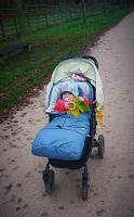 obr. 3 zvídavé nesedící dítě jezdí v hlubokém kočárku na bříšku