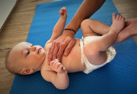 Poté je vhodné dítě otočit na bříško, aby došlo k dalšímu přirozenému tlaku a promasírování oblasti.