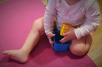 obr. 4 - 6 cvičení se 4letým dítětem: aktivace svalů břicha a trupu v různých pozicích a s využitím pomůcek