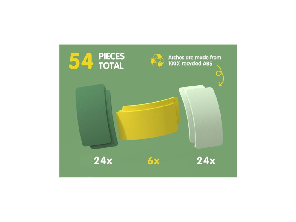 Arches jsou vyráběny v Evropě ze 100% recyklovaného plastu! Jsou to bezpečné, udržitelné a odolné hračky, které rostou s vaším dítětem. Jsou plně kompatibilní s ostatními produkty systému Waytoplay, takže vaše silnice se promění v rampy, tunely nebo mistrovská architektonická díla!