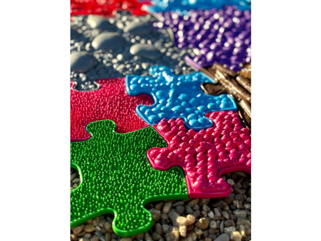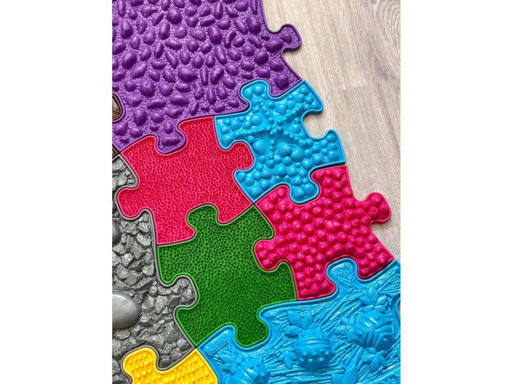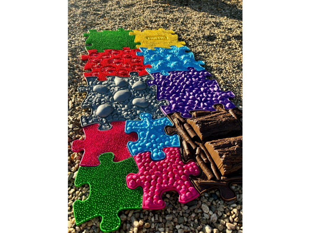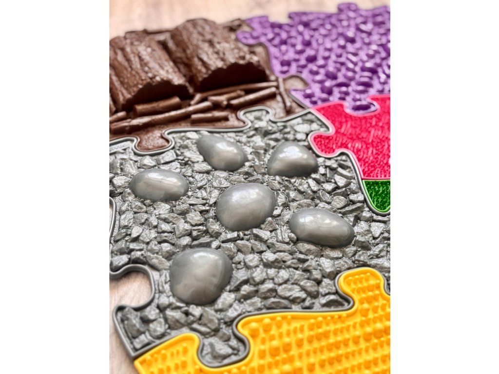 Měkké podlahy slouží k jemnější stimulaci, probuzení a masáži chodidel. Poskytují úlevu unaveným chodidlům a aktivují nepoužívané svaly. Tvrdé povrchy pomáhají k zahřátí nohou, zintenzivní pocity z chůze po podlahách, posilují svaly a zpevňují ochablé kotníky. Pro zpevnění středu těla, pro lepší rovnováhu a celkovou stabilitu je vhodná 3D podlaha Klády. Celkově jde tedy o vyváženou kombinaci dílů, která splní Vaše očekávání.