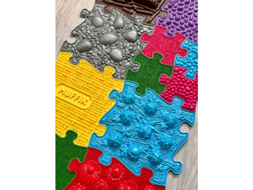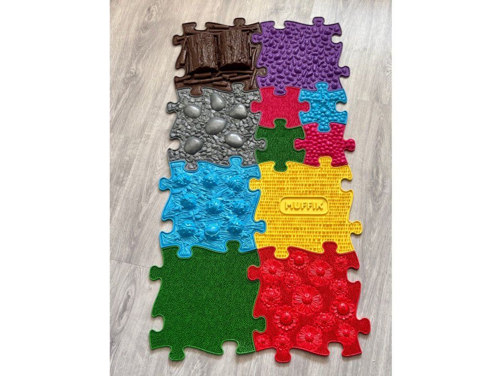 MUFFIK masážní koberečky jsou určeny pro rozvoj správné chůze, držení těla a jeho celkovou posturu, zvláště pak pro posílení středu těla a hlubokého stabilizačního systému.