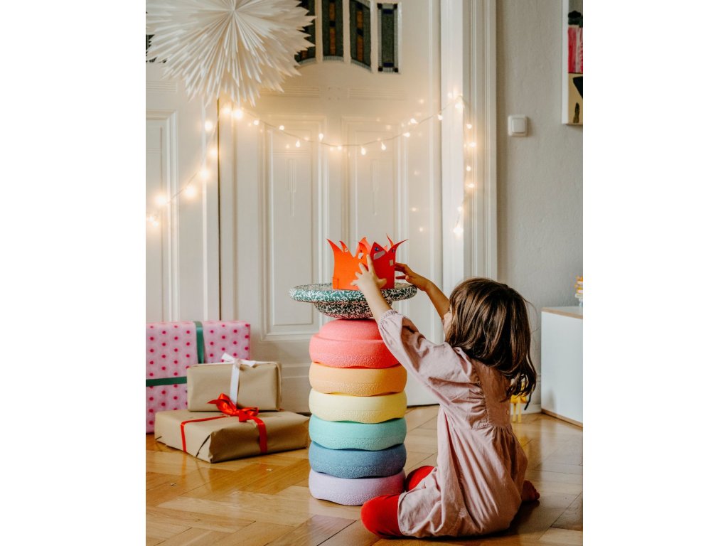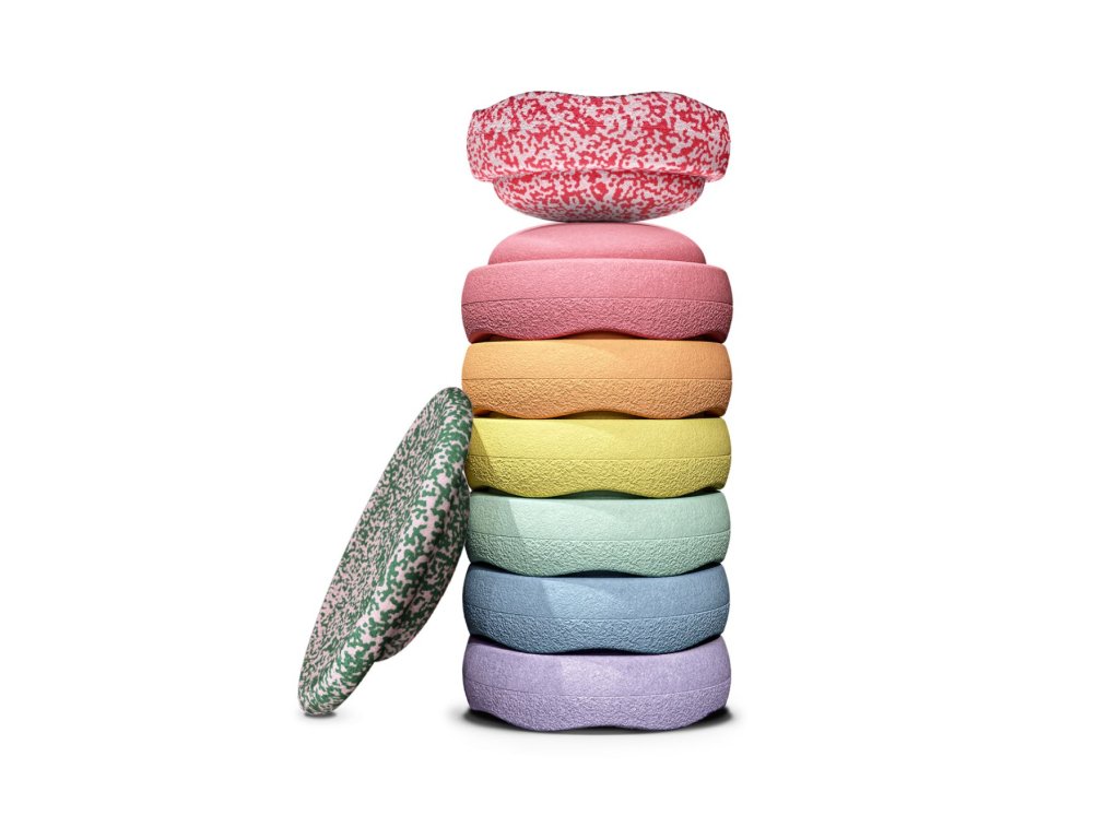 Vyrobeno z lehkého, odolného a 100% recyklovatelného EPP, bezpečné díky designu bez ostrých hran, voděodolné a odolné vůči UV záření. Balanční kameny unesou až 180 kg, deska 120 kg, proto je sada vhodná pro všechny věkové kategorie. Vybírat můžete z duhové nebo pastelové barevné varianty.